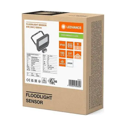 Descrizione Confezione Multipack 4x Ledvance Proiettore LED Aluminium Nero 8W 1200lm 100D - 840 Bianco Freddo | IP65 - Sensore di Movimento e Luce - Simmetrico