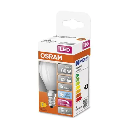 La lampada Confezione Multipack 6x Osram Classic LED E14 Sferica Filamento Ghiaccio 5.5W 806lm - 840 Bianco Freddo | Dimmerabile - Sostitutiva 60W è il sostituto perfetto per le tue vecchie lampade 60W con attacco a vite piccolo E14 grazie alla sua tecnologia LED. Passare a LED ti offrirà molti vantaggi!