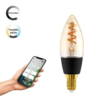 La lampada Eglo Connect.Z Smart LED Candela E14 Filamento Ambra 4.9W 320lm - 827-865 Regolabile Bianca | Dimmerabile - Sostitutiva 25W è il sostituto perfetto per le tue vecchie lampade 25W con attacco a vite piccolo E14 grazie alla sua tecnologia LED. Passare a LED ti offrirà molti vantaggi!
