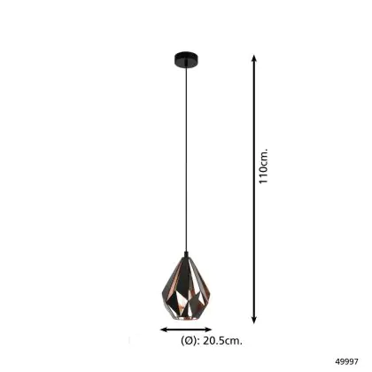 Eglo Luce Pendente Carlton 1 Nero, Rame | Adatto per E27