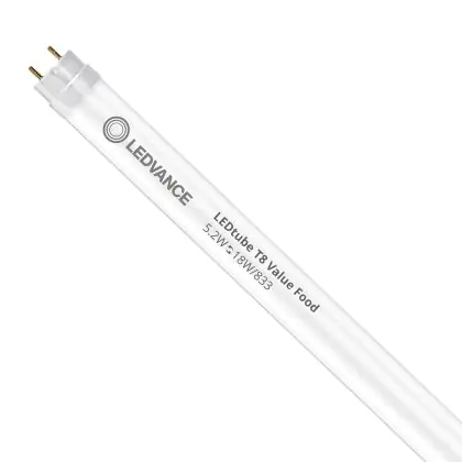 Descrizione Ledvance Tubo LED T8 Performance Food (EM/Mains) Standard Output 5.2W 500lm - 833 Luce Calda | 60cm - Sostitutiva 18W
