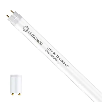 Il Ledvance Tubo LED T8 Value (EM/Mains) Ultra Output 29W 3500lm - 865 Luce del Giorno | 150cm - Sostitutiva 58W è l’alternativa perfetta per il tubo fluorescente standard 58W nelle plafoniere con un reattore. Con questo tubo LED hai una garanzia di una vita media utile molto lunga e 5 anni Lampadadiretta.it di totale garanzia. .