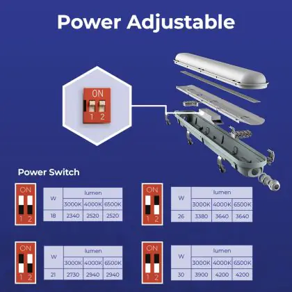 Descrizione Noxion Stagna LED Poseidon V3.0 43W 5590/6020lm - 830-865 CCT | 150cm - Cablaggio Entra/Esci (5x2.5mm2) - Sensore Di Movimento E Luce