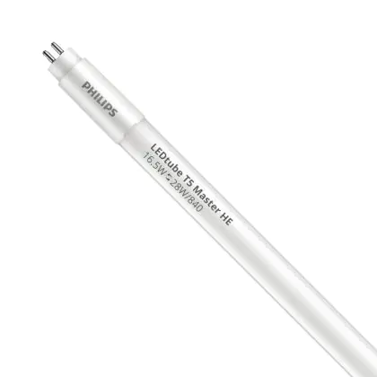 Il Philips Tubo LED T5 MASTER (Mains AC) High Efficiency 16.5W 2500lm - 840 Bianco Freddo | 115cm - Sostitutiva 28W è un tubo LED perfetto per sostituire gli standard tubi fluorescenti di 28 W. Con questo tubo LED di Philips ti assicuri una lunga durata e 5 anni di garanzia.